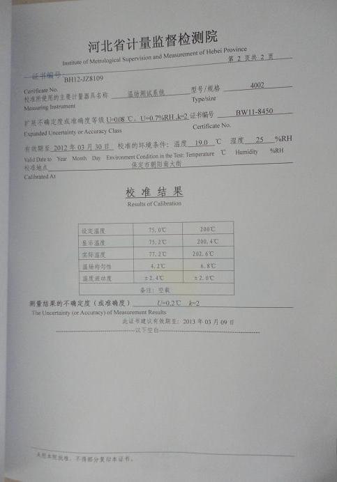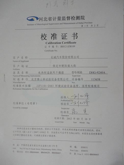 >>电热恒温鼓风干燥箱校准证书-河北计量院-长城汽车