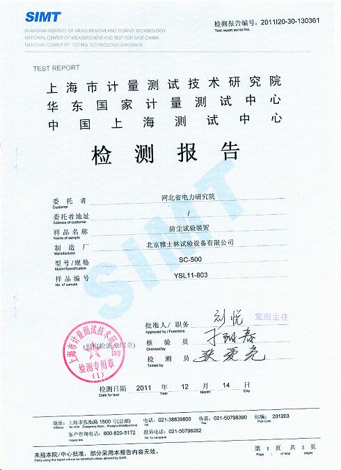 砂尘试验箱检测报告-上海计量院-河北电科院