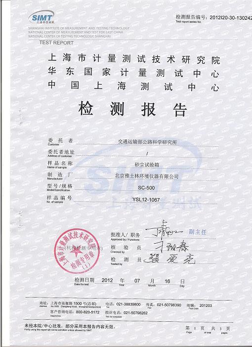 >>砂尘试验箱检测报告-上海计量院-交通运输部