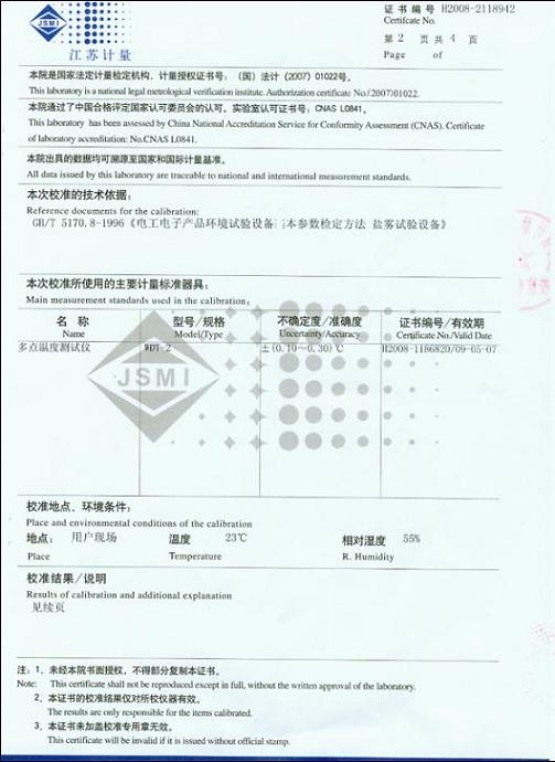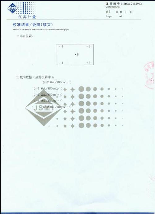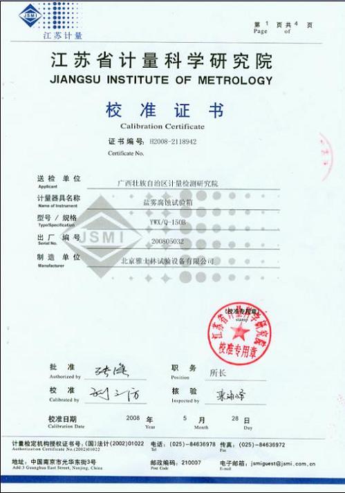 盐雾腐蚀试验箱校准证书-江苏计量院-广西计量院
