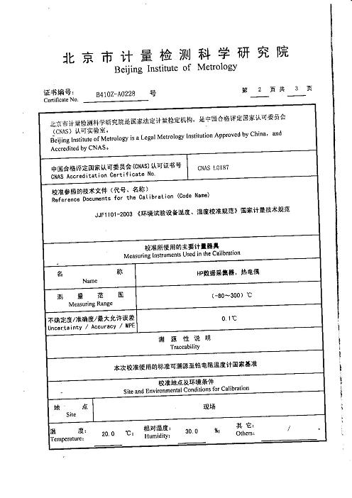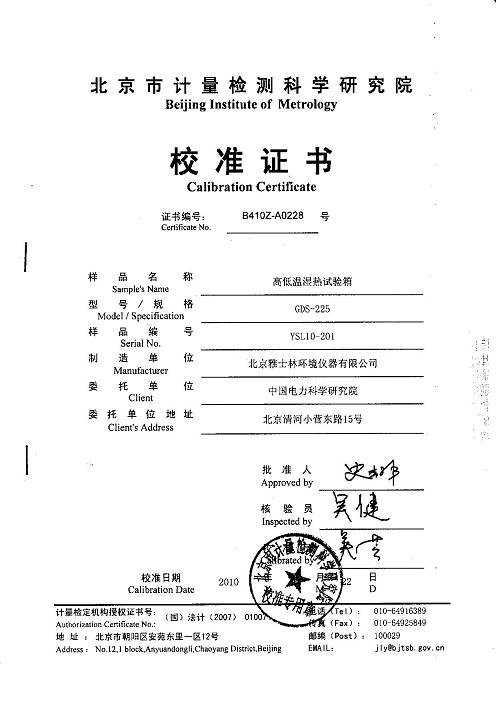 >>高低温湿热试验箱校准证书-北京计量院-中国电科院2