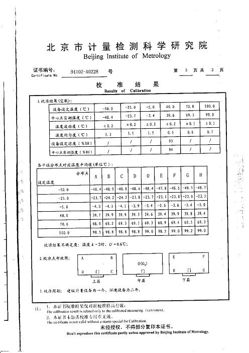 高低温湿热试验箱校准证书-北京计量院-中国电科院2