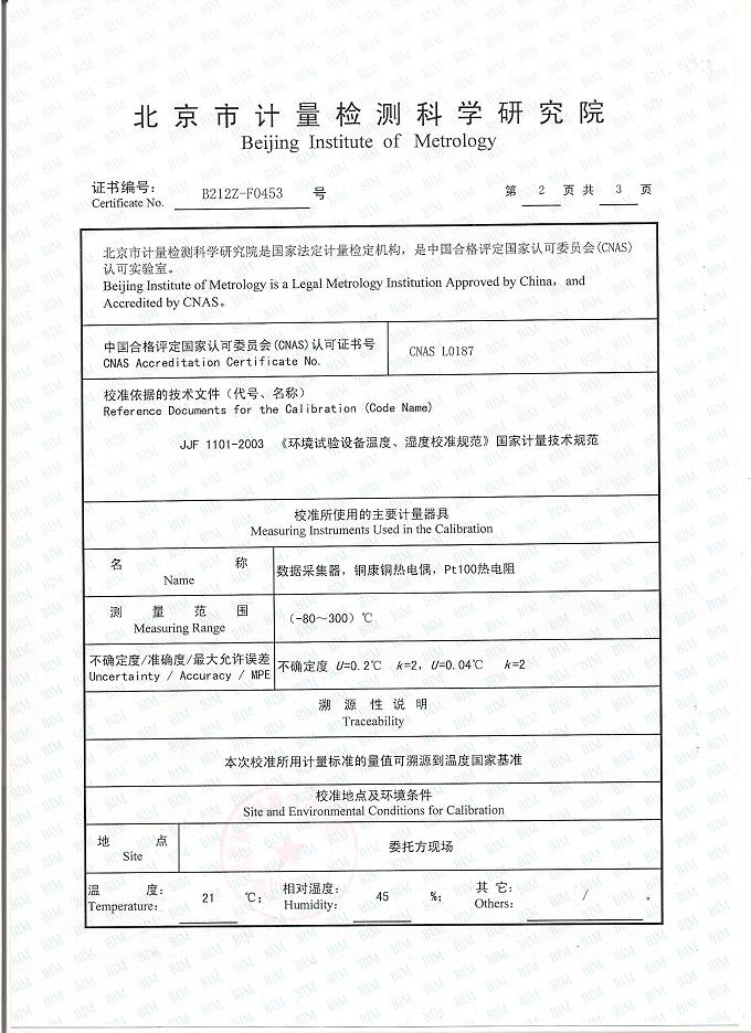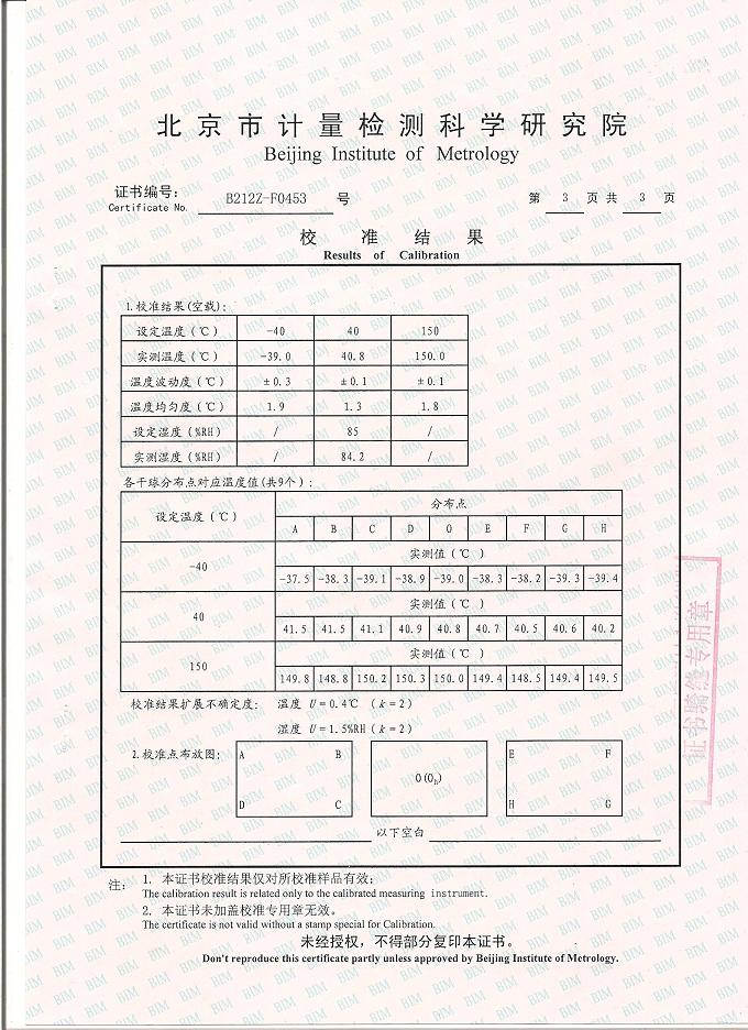 高低温交变湿热试验箱校准证书-北京计量院-超思电子