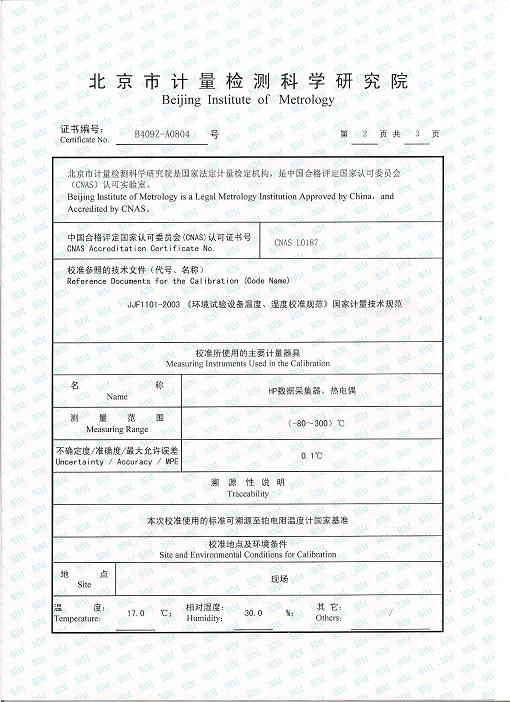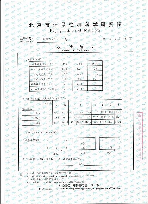 >>高低温交变湿热试验箱校准证书-北京计量院-拉特激光